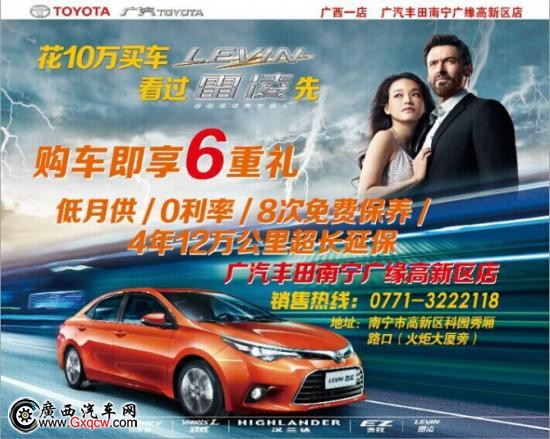 南寧廣緣高新區(qū)店攜手榮和大地,開展全系購車盛宴全場攜史上最帥中級(jí)車-雷凌,全新跨級(jí)時(shí)尚大兩廂-致炫,**中高級(jí)車銷量王-凱美瑞,高大上SUV-漢蘭達(dá)和時(shí)尚多功能家庭FUV-逸致等5款史上最強(qiáng)車型強(qiáng)勢登場。