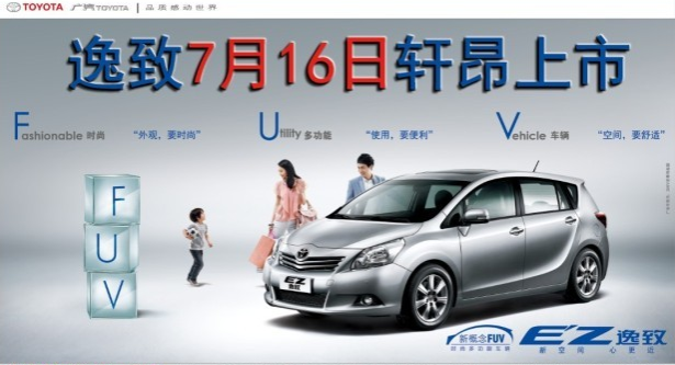 據(jù)廣汽豐田廣緣店獲悉,廣汽豐田為中國消費者精心打造的首款FUV車型E’Z逸致,將于2011年7月16日上午10點半,在廣汽豐田廣緣店舉行隆重的上市儀式,到店參加上市儀式的客戶,均可獲得精美豪禮一份,現(xiàn)場還有精彩的活動表演,及精心打造的模特泳裝秀,現(xiàn)場購車,還有驚喜好禮相送。