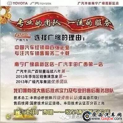 還有更多優(yōu)惠信息,請到廣汽豐田南寧廣緣高新區(qū)店咨詢