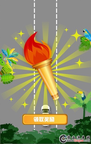 B. 點擊開始,進行汽車蓄能小游戲,操作汽車左右移動,收集沿途火炬,儲蓄圣火能量。