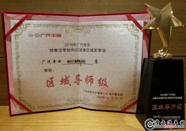 10月27日,在2016年廣汽豐田銷(xiāo)售店零部件QC改善區(qū)域發(fā)表會(huì)西安分賽區(qū)發(fā)表會(huì)上,售后經(jīng)理?xiàng)畛艽砦业赀M(jìn)行改善發(fā)表,經(jīng)過(guò)12家經(jīng)銷(xiāo)店激烈的角逐,我店最終榮獲2016廣汽豐田銷(xiāo)售店零部件QC改善區(qū)域發(fā)表會(huì)西安分賽區(qū)的區(qū)域?qū)熂?jí)金獎(jiǎng)!