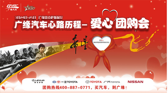 廣緣汽車攜手930私家車電臺(tái)《關(guān)愛聯(lián)盟》邀您一起做公益,為百色市隆林縣豬場(chǎng)鄉(xiāng)爛木干小學(xué)的孩子送去學(xué)習(xí)的希望。3月24日-25日到高新區(qū)科園大道45號(hào)雷克薩斯展廳參加廣緣汽車愛心團(tuán)購(gòu)會(huì),購(gòu)買雷克薩斯、一汽豐田、廣汽豐田、東風(fēng)日產(chǎn)車型即以您的名義為山里的孩子送去愛心,更能直享團(tuán)購(gòu)價(jià)!*高可獲贈(zèng)10萬公里汽油,更大優(yōu)惠、更大的驚喜!