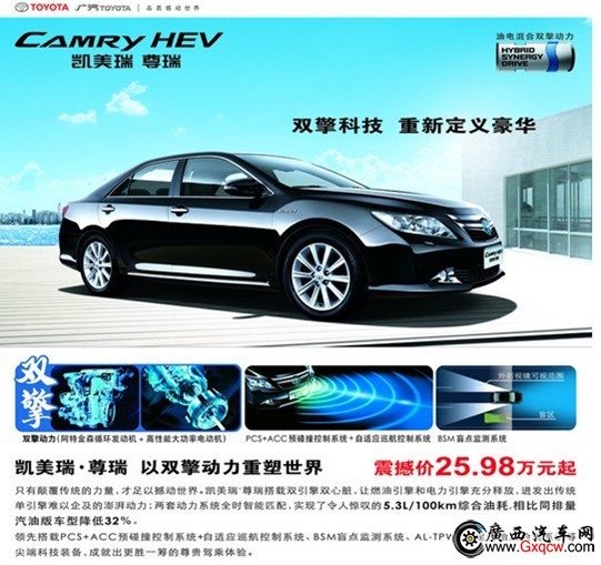 凱美瑞•尊瑞采用的新一代油電混合“雙擎”動(dòng)力屬于完全混合動(dòng)力技術(shù),是兼顧傳統(tǒng)與未來于一身的技術(shù),是真正能夠?qū)⒅袊鐣?huì)的節(jié)能減排目標(biāo)落到實(shí)處的技術(shù)。先進(jìn)的技術(shù)、卓越的產(chǎn)品力和親民的售價(jià),使得凱美瑞•尊瑞成為中國新能源車發(fā)展最為成熟和理性的務(wù)實(shí)之選,必將引領(lǐng)新能源車發(fā)展,廣汽豐田也勢(shì)必將以此為契機(jī)成為國內(nèi)新能源汽車的領(lǐng)跑者。