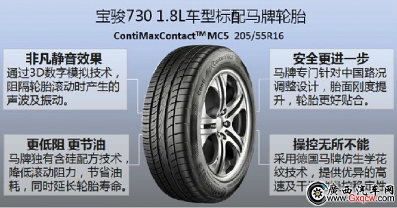 標(biāo)配Continental馬牌輪胎:兩款車型均標(biāo)配Continental馬牌輪胎,是寶駿730 1.8L車型的一大亮點(diǎn)。作為歐洲頂級(jí)輪胎制造商Continental馬牌輪胎覆蓋了很多豪華品牌的高端車型。搭載在寶駿730上的馬牌MC5系列產(chǎn)品,是馬牌專為亞洲用戶設(shè)計(jì)的低噪運(yùn)動(dòng)型豪華車輪胎,其滾動(dòng)降噪、胎面剛性、含硅技術(shù)、仿生花紋是馬牌獨(dú)有并**的技術(shù)。頂級(jí)的設(shè)計(jì)及工藝,可以賦予寶駿730 1.8L車型非凡的靜音效果、經(jīng)濟(jì)的燃油消耗、抓地強(qiáng)勁的安全性能,以及超越同級(jí)的操控水平。