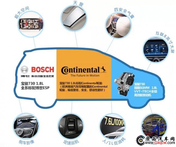 2015年1月6日,上汽通用五菱再推一款全新配置的“7座家用車”,寶駿730 1.8L豪華導(dǎo)航版,售價(jià)8.98萬元。新車不僅配備了博世ESP、GPS導(dǎo)航等科技配置,還使用了世界**的Continental馬牌輪胎,同時(shí)提供糖果白、大地棕、大漠金、晴空銀、星夜黑、琥珀金,六種顏色供不同喜好消費(fèi)者選擇。