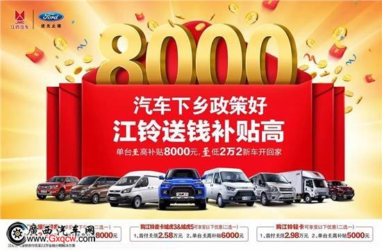 在“汽車下鄉(xiāng)”惠民政策推出的30天時間里,緊跟政策東風(fēng),汽車廠商紛紛推出了不同的優(yōu)惠活動。作為開始打響“汽車下鄉(xiāng)”政策首槍的汽車廠商,江鈴皮卡拒絕“喊口號”,在春節(jié)假期后迅速推出了長達(dá)48天的優(yōu)惠活動。
