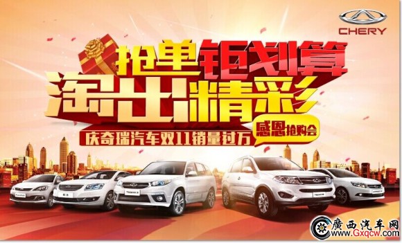 活動主題:搶單鉅劃算 淘出精彩 —慶奇瑞汽車雙11銷量過萬感恩搶購會