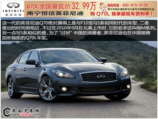 全新Q70車型主攻中大型車市場,以其獨(dú)特的外形設(shè)計(jì)與強(qiáng)勁的動(dòng)力表現(xiàn)定位于運(yùn)動(dòng)型豪華轎車,而長軸版的Q70L加大了后排乘坐空間。作為一款豪華型轎車,其內(nèi)飾使用了大面積的木紋飾板,集導(dǎo)航與藍(lán)牙于一體的多媒體電子設(shè)備為駕乘人員在長途駕駛時(shí)提供了娛樂休閑的條件。