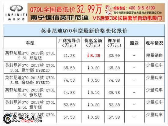 2015年3月21日(本周六)在南寧英菲尼迪恒信旗艦店舉辦首屆新車上市發(fā)布會(huì),到店享好禮、抽大獎(jiǎng),歡迎關(guān)注英菲尼迪品牌的新老客戶可通過 購車免費(fèi)咨詢電話 400-897-2449 了解*新的試業(yè)促銷信息!
