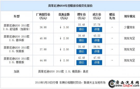 欽州英菲尼迪QX50鉅惠35000元少量現(xiàn)車,到店找網(wǎng)銷顧問可領(lǐng)取特殊禮品一份,還贈送任意品牌任意車型四輪定位,網(wǎng)絡(luò)專線:400-815-6109 地址:南寧市西鄉(xiāng)塘客運(yùn)站與羅文大道交匯處。具體優(yōu)惠如下: