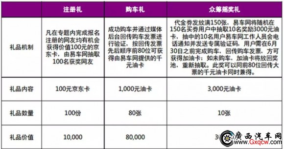 凡在2015年6月4日-2015年6月30日期間,在專題內(nèi)完成報(bào)名注冊(cè)的網(wǎng)友均有機(jī)會(huì)獲得價(jià)值100元的京東卡,由易車網(wǎng)、京東抽取獲獎(jiǎng)網(wǎng)友共計(jì)100名。