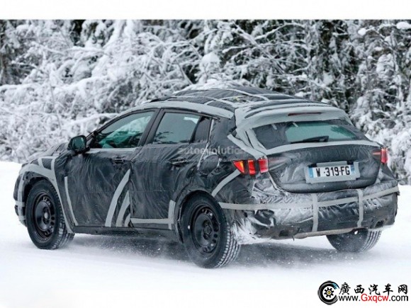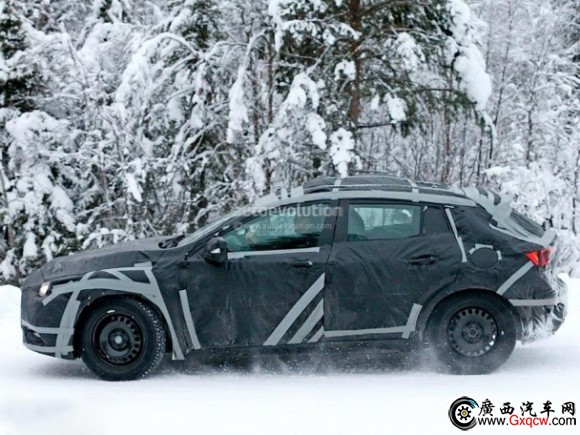 外觀方面,從諜照上看并不能將該車(chē)的外觀看的很清楚,是因?yàn)樵撥?chē)包裹著厚厚的偽裝。但是我們可以看到,測(cè)試車(chē)的前進(jìn)氣格柵和后尾燈均采用了與概念車(chē)相似的設(shè)計(jì)。這款車(chē)還配備有雙邊共兩出排氣管。