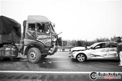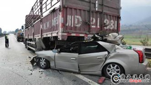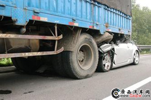 貨車駕駛室的視線高看得遠(yuǎn),貨車駕駛員能提前發(fā)現(xiàn)前方道路的狀況。所以,要是前面的大貨車剎車了一定要跟著剎車,千萬不要心存僥幸借機(jī)超車,萬一前方有情況或者大貨車急剎造成失控,離它近反而更危險(xiǎn)。如不及時(shí)剎車,小車很容易鉆到貨車底下被壓扁,生還的可能性非常小。