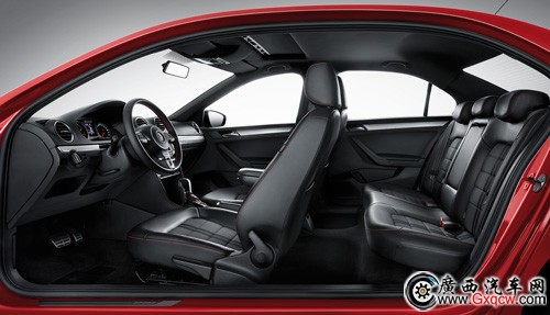 捷達sportline的內(nèi)飾整體樣很有運動的感覺,A柱和車頂都更換為了黑色的。