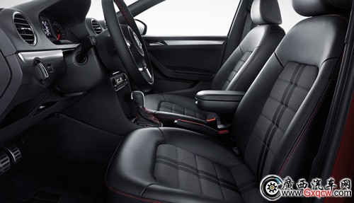 捷達sportline的座椅采用了兩種材質(zhì),并且也同樣使用了紅色的縫線加以裝飾,包裹性以及舒適性都表現(xiàn)不錯。