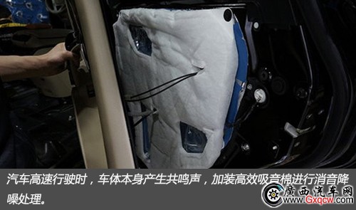 汽車高速行駛時(shí),車體本身產(chǎn)生共鳴聲,加裝高效吸音棉進(jìn)行消音降噪處理。