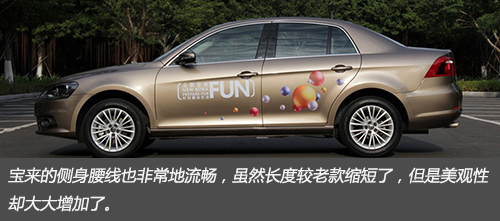 寶來的側身腰線也非常地流暢,雖然長度較老款縮短了,但是美觀性卻大大增加了。
