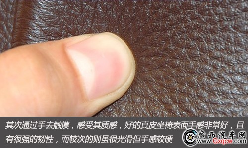 其次通過手去觸摸,感受其質(zhì)感,好的真皮坐椅表面手感非常好,且有很強的韌性,而較次的則雖很光滑但手感較硬