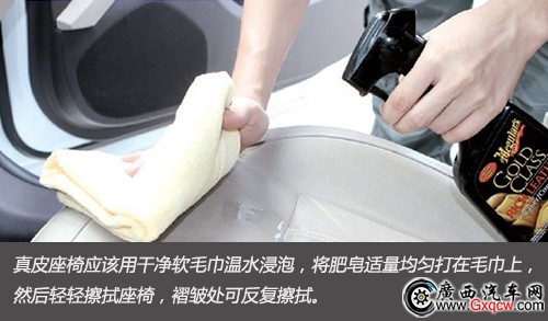 真皮座椅應(yīng)該用干凈軟毛巾溫水浸泡,將肥皂適量均勻打在毛巾上,然后輕輕擦拭座椅,褶皺處可反復(fù)擦拭。