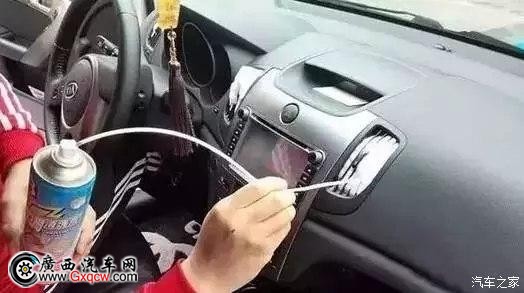 ① 將清洗劑噴入中控臺(tái)上的每個(gè)出風(fēng)口,幾分鐘后,開(kāi)啟空調(diào)吹出;