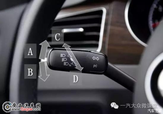 位置D:操縱前照燈閃光器或關閉遠光燈。只要拉動操縱桿,便會執(zhí)行前照燈閃光器功能