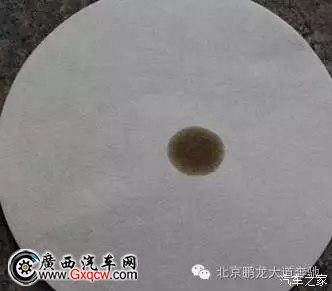 將機(jī)油滴在測(cè)試紙上后可以看到機(jī)油擴(kuò)散后的狀態(tài),下圖是新機(jī)油,可以看到顏色較淡并只有一層。