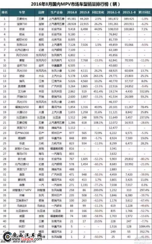 8月份MPV排行榜共統(tǒng)計了43款車型。8月份MPV市場銷量實現(xiàn)17.7萬輛,同比增長31.9%,增幅不及前兩個月。
