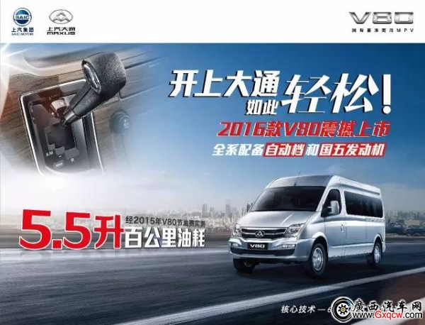上汽大通V80得益于VGT和第三代高壓共軌“黃金動力總成”的良好表現(xiàn),節(jié)油效果更加明顯。據(jù)測算,V80國五車型比其他同類車型節(jié)約20%,綜合百公里油耗僅為5.5升。這對于體積較大的寬體輕客而言,燃油經(jīng)濟(jì)性令人印象深刻。AMT手自一體變速箱,大大降低了長度駕駛的疲勞。
