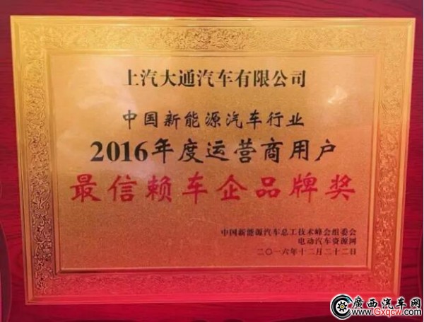 今日,由《電動汽車資源網(wǎng)》主辦的2016第三屆中國新能源汽車總工技術(shù)峰會暨第二屆運營商與車企對接采購交流會在深圳舉辦了頒獎典禮。在這一專為新能源汽車人打造的行業(yè)盛會上,上汽大通又攬獲一枚新能源大獎——2016中國新能源汽車行業(yè)年度運營商用戶最信賴物流車企業(yè)。