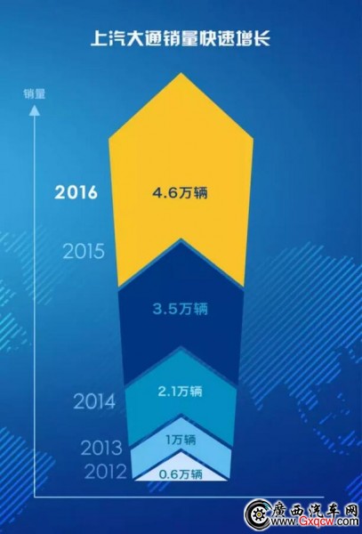 上汽大通于2011年成立,企業(yè)發(fā)揮自身的技術(shù)優(yōu)勢(shì),以歐洲汽車設(shè)計(jì)標(biāo)準(zhǔn)、節(jié)能環(huán)保前沿理念,并結(jié)合舒適駕乘體驗(yàn)為消費(fèi)者傾力打造出系列產(chǎn)品,產(chǎn)品型譜涵蓋輕型客車、MPV、輕型卡車、特種改裝車等汽車全領(lǐng)域,全面布局中大型SUV、氫燃料電池新能源車、智能房車、MPV和寬體輕客五大領(lǐng)域。短短五年時(shí)間,上汽大通憑借“大通速度”突飛猛進(jìn),不斷進(jìn)行業(yè)務(wù)和模式上的創(chuàng)新。11月份,上汽大通整車銷售5168臺(tái),同比增長(zhǎng)29%。截止11月30日,上汽大通2016年累計(jì)銷售整車42280臺(tái),同比增長(zhǎng)32%,其中V80累計(jì)銷售25496臺(tái),目前在國(guó)內(nèi)細(xì)分市場(chǎng)占有率達(dá)到19.6%,G10累計(jì)銷售16748臺(tái),占有19%的細(xì)分市場(chǎng)份額。