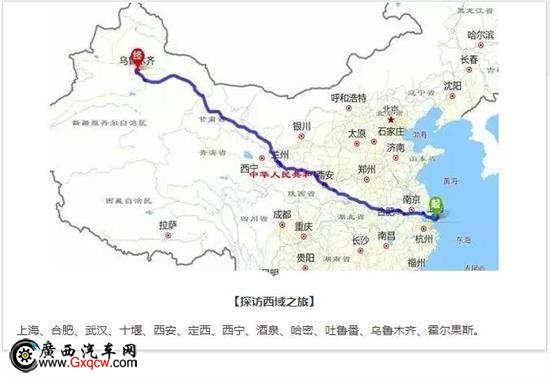 上海、合肥、武漢、十堰、西安、定西、西寧、酒泉、哈密、吐魯番、烏魯木齊、霍爾果斯。