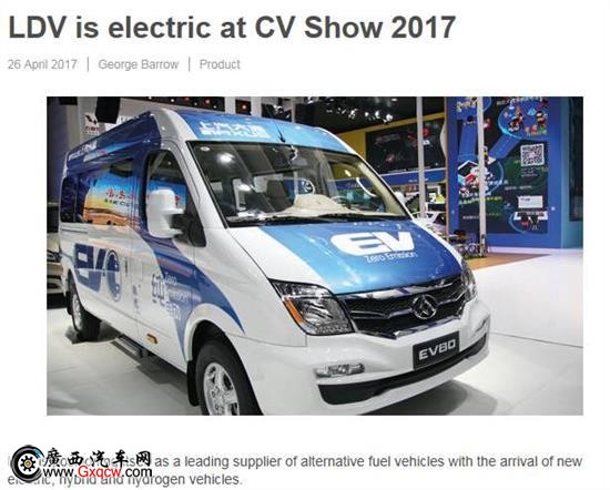 LDV攜電動(dòng)產(chǎn)品亮相2017年伯明翰車展。伴隨電動(dòng),混合動(dòng)力和氫汽車的到來,LDV定位成為替代燃料汽車的主要供應(yīng)商。電動(dòng)版本EV80已經(jīng)在伯明翰車展中發(fā)布,英國目前已經(jīng)可以接受訂單預(yù)定。英國經(jīng)銷商表示:等到18個(gè)月后氫基礎(chǔ)設(shè)施在英建成后,英國將會(huì)引入氫燃料電池V80。
