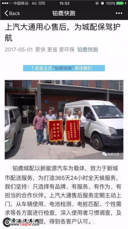 經(jīng)過幾天迎著朝霞,披著晚霞,上汽大通售后服務(wù)人員專業(yè)和周到的工作迎來了客戶的滿意和歡送。貼心周到的服務(wù)贏得了客戶的信賴和贊揚,上海鉑鹿物流有限公司還特地在自己公司微信公眾號對上汽大通的貼心服務(wù)表達了表揚和感激。上汽大通主動上門“貼心到家”就像是五月甜甜地風吹到了每一個客戶的心里。發(fā)自內(nèi)心深處的表白:有這樣的售后服務(wù)的保障,今后發(fā)展的需求,首選就是上汽大通。