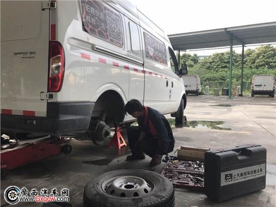 雨水綿綿,氣溫回落。維修技師們根據(jù)物流行業(yè)的特點,對車輛各系統(tǒng)進行了細致地檢查,在檢查中發(fā)現(xiàn)制動片的磨損等問題,服務(wù)顧問記錄下故障情況,在現(xiàn)場為客戶做好進廠維修的預(yù)約。