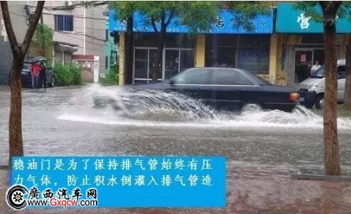 通過積水時,應穩(wěn)油門低檔勻速通過。穩(wěn)油門是為了保持排氣管中始終有壓力氣體,防止積水倒灌入排氣管造成車輛熄火。低檔勻速是為了保證車輛通過積水時能穩(wěn)定有力。