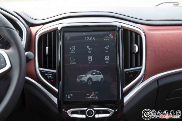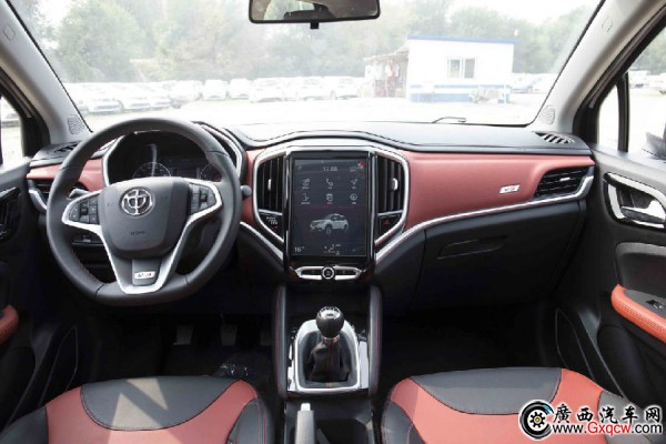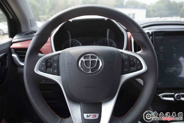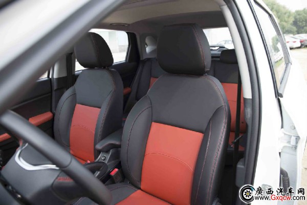三幅方向盤采用真皮包裹,握感的舒適度更好并配以紅色縫線,符合年輕定位的同時增加了一定的運動感。中間采用3.5寸TFT彩色智能儀表具有行車電腦、導(dǎo)航顯示、娛樂系統(tǒng)、車輛狀態(tài)四大功能,并且實現(xiàn)和10.4寸中控屏幕雙屏聯(lián)動。