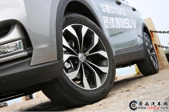 中華V6為頂配車型配備了19英寸輪圈,另外還有17、18英寸選擇,拋光處理的花瓣造型很好看,235/55R19的萬力輪胎實(shí)際表現(xiàn)也還不錯(cuò)。