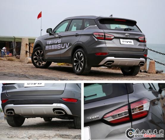 華晨中華V6的收尾做的也不錯(cuò),也同樣有了家族化特征,半透明的尾燈看上去很精致,單邊雙出的尾排也不是樣子貨。