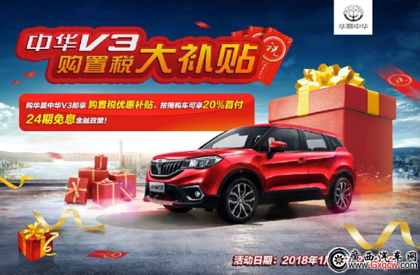 根據(jù)財政部、國家稅務(wù)總局聯(lián)合發(fā)布《關(guān)于減征1.6升及以下排量乘用車車輛購置稅的通知》,自2018年1月1日起,1.6L及以下排量乘用車車輛購置稅恢復(fù)按10%的法定稅率征收車輛購置稅。不過,對于購買華晨中華V3的用戶將繼續(xù)享受購置稅補貼的專屬禮遇。即日起至2018年2月28日,凡購買華晨中華V3的用戶均享受購置稅補貼25%的重磅鉅惠。另外,按揭購車可享20%首付,24期免息金融政策。降低購車成本,讓有車夢想繼續(xù)飛!