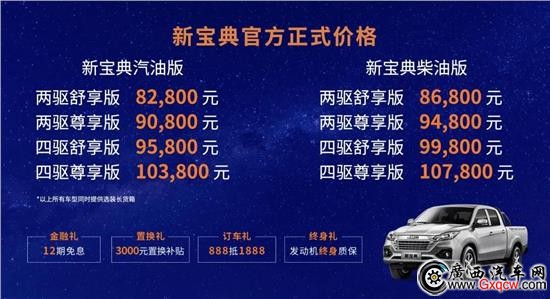 除了出眾的性能外,新寶典憑借極高的性價比成為8萬級皮卡新標桿,加之豐厚的購車優(yōu)惠:888元抵1888元購車禮、3000元補貼置換禮以及十二期免息金融禮,進一步鞏固了其皮卡性價比之王的地位。