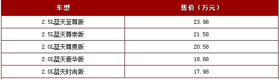 目前,Mazda6阿特茲共推出5款車型,7種顏色,采用2.5L及2.0L“創(chuàng)馳藍(lán)天”發(fā)動(dòng)機(jī),零售價(jià)格分別為: