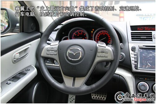 睿翼的多功能方向盤采用CF-NET技術(shù),即“多功能人機(jī)界面系統(tǒng)”,實(shí)現(xiàn)了多種系統(tǒng)間的電子溝通。該方向盤將各類常用開關(guān)集中于方向盤上,駕駛時(shí)只要在方向盤上進(jìn)行簡單操作,即可輕松控制包括行車電腦、巡航、換擋、音響設(shè)備、空調(diào)等在內(nèi)的各個(gè)系統(tǒng)。真正實(shí)現(xiàn)了駕駛時(shí)的“手不離方向盤”和“視線零轉(zhuǎn)移”,保證了駕駛者的行車安全。詮釋了馬自達(dá)品牌“Zoom-Zoom”的運(yùn)動(dòng)精神。
