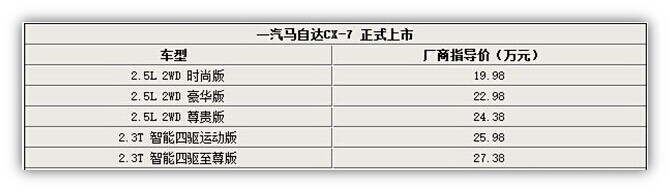 國(guó)產(chǎn)馬自達(dá)CX-7正式上市 售19.98萬(wàn)起