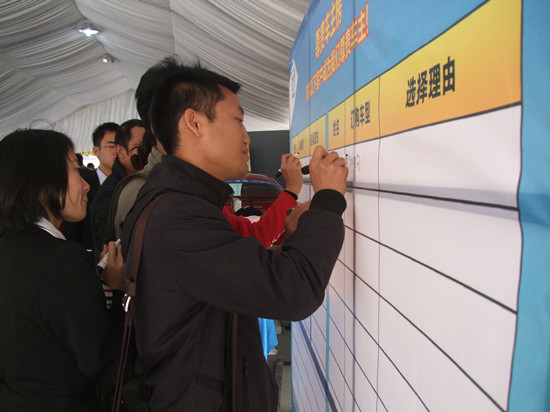 政策看板揭曉后賓客紛紛在“訂車榜”上寫下名字