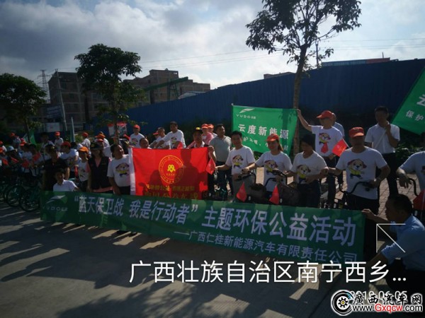 6月5日一早,在這美麗的初夏時刻,廣西仁桂新能源汽車有限責任公司的志愿者和中國公益在線南寧愛心站及云易恒基志愿者騎行隊在南寧市高新區(qū)進行了以“藍天保衛(wèi)戰(zhàn),我是行動者”為主題的環(huán);顒印