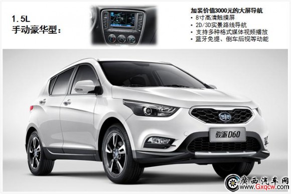 三重禮 暢行禮:凡購買駿派D60 1.5L手動豪華型,專享價值3000元的8寸大屏帶倒車影像、藍牙導航;