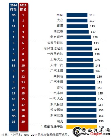 J.D.Power 2015年中國車輛可靠性研究品牌排名