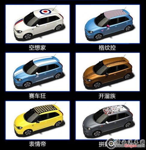 除了90周年紀(jì)念車貼,2014款MG3歐洲版還推出了多款融入英倫涂裝系列,稱之為“英倫Fun”個(gè)性涂裝車貼,該系列是MG**設(shè)計(jì)中心的設(shè)計(jì)師們,經(jīng)過長時(shí)間的思考與努力后,所創(chuàng)作出來的極具英倫風(fēng)格的設(shè)計(jì)!坝怓un”系列共有6款不同的設(shè)計(jì),包括空想家、格紋控、開溜族、表情帝、賽車狂、拼貼迷,根據(jù)車身顏色的不同,可以形成多種顏色的組合,這無疑將滿足年輕消費(fèi)者對(duì)于個(gè)性化的追求。