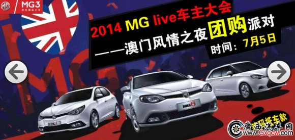 7月5日,2014 MG live車主大會(huì)將在廣西桂爵白沙展廳盛大開啟。屆時(shí),你不僅享受一年中最低的優(yōu)惠價(jià)格,同時(shí)德州撲克、百家樂、俄羅斯輪盤等活動(dòng)讓您體驗(yàn)一場(chǎng)澳門風(fēng)情派對(duì)盛宴。不僅如此,搖滾樂隊(duì)、靚麗車模,兔女郎當(dāng)晚將嗨爆全場(chǎng),機(jī)會(huì)難得!趕緊來報(bào)名吧!