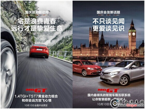 90年來,MG品牌一直致力于造年輕人的“夢想之車”。MG GT于今年6月在上汽位于英國伯明翰的長橋工廠與媒體首次見面,就引起了極大的關(guān)注。而在8月底成都車展上的首次國內(nèi)亮相,以及9月在上海正大廣場的“身臨奇鏡”創(chuàng)意秀和外灘品鑒會,MG GT俘獲了大批年輕人的心,成為消費者心中又一輛“dream car”。就在剛剛過去的長假,MG GT推出“國慶系列”,“瘋狂購物不再愛,體驗文化成摯愛”的國慶出境新潮流、“宅是浪費青春,遠行才是摯愛生命”的國慶旅游新動向、“不只談見聞,更愛談見識”的國慶會友新話題等,每日一個主題,更讓年輕族群深感如遇知音。